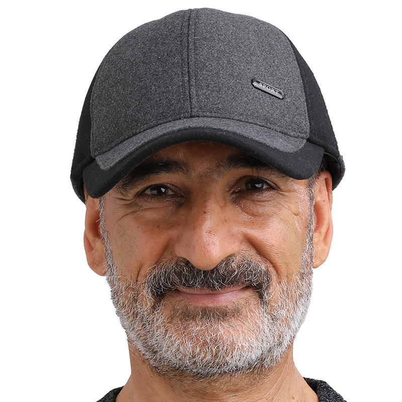Gorra de béisbol de lana para hombre, gorro de invierno cálido con forro polar gris y negro para papás y abuelos de mediana edad y mayores
