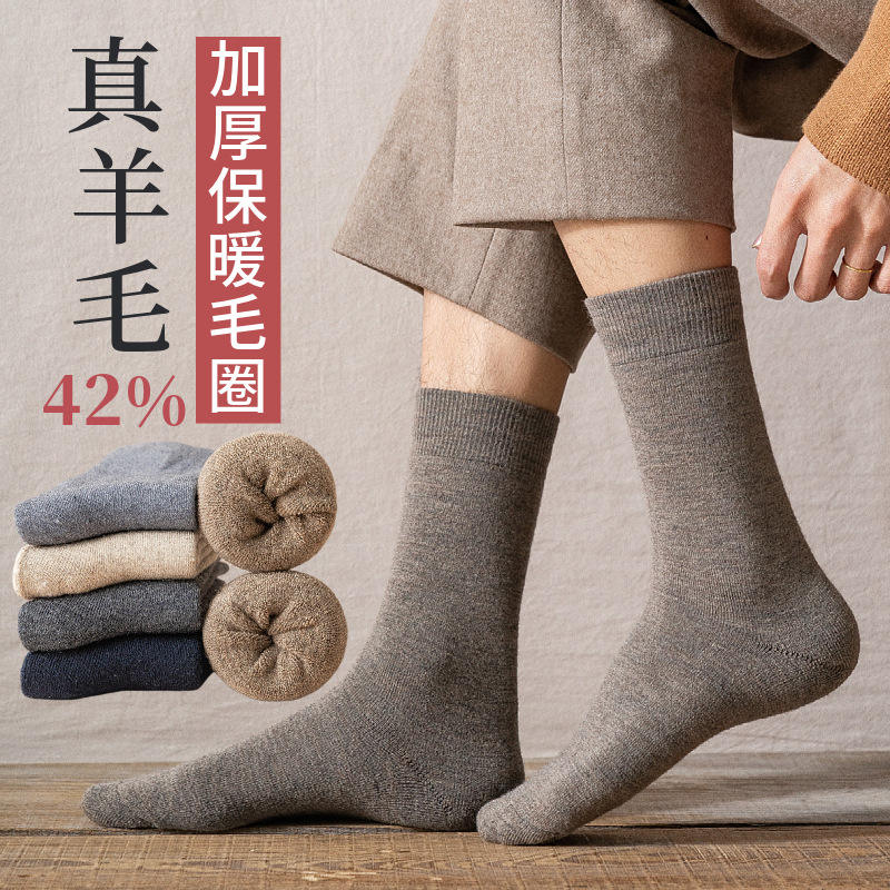 Men's Wool Mid-Calf Socks Thickened Warm Thermo Solid Color Long Socks For Winter Casual Wear