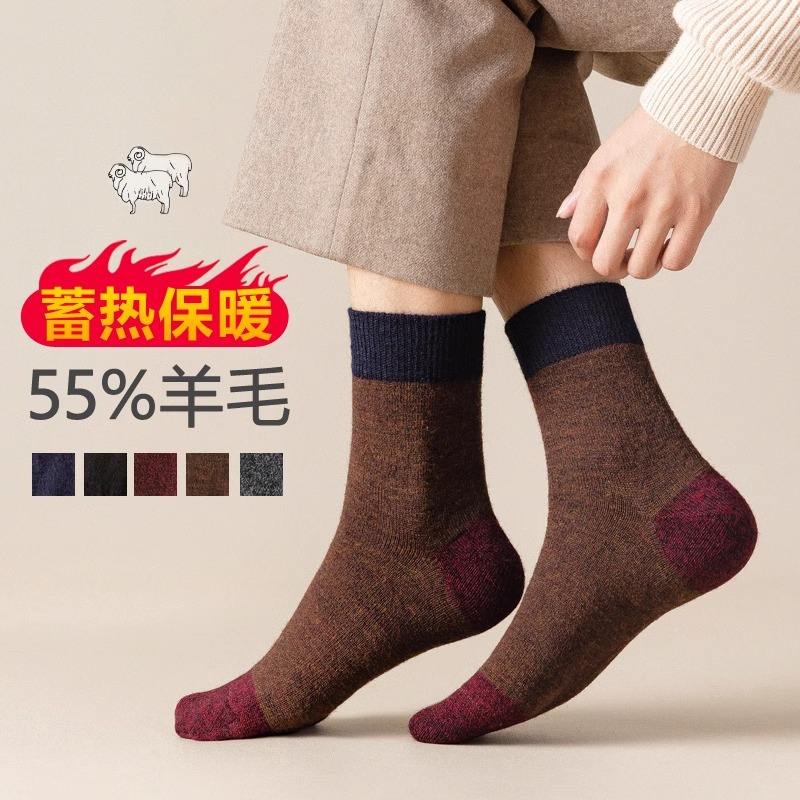Men's Wool Socks 55% Wool Thermo Warm Mid-Calf Autumn Winter Long Socks Color Blocking Design