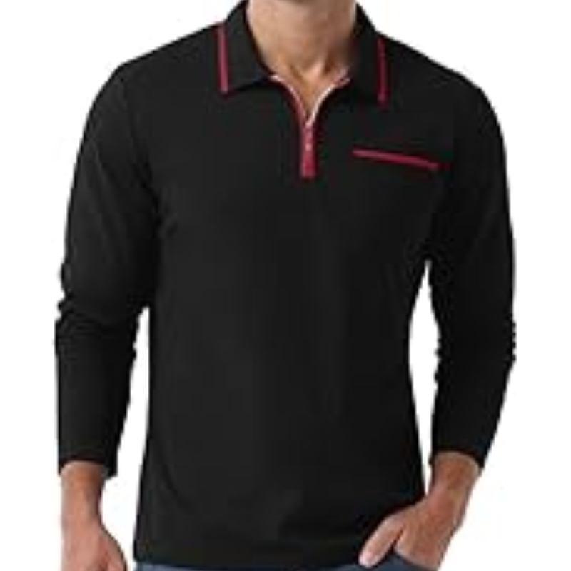 Polo de trabajo para hombres con bolsillo de manga larga - Polo de manga larga fácil de cuidar y duradero con bolsillo en el pecho