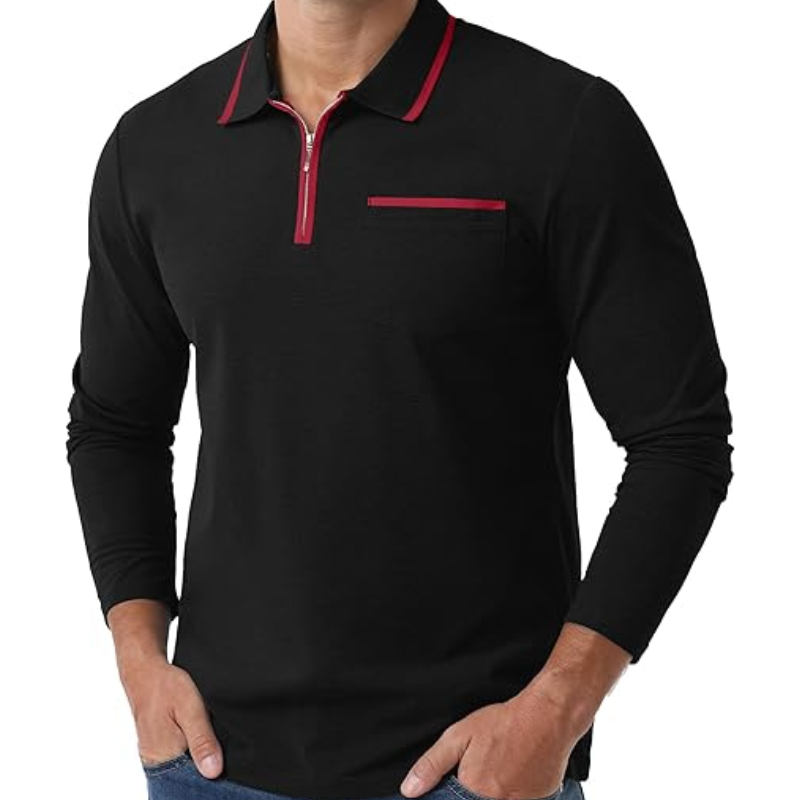Polo de manga larga con cremallera para hombre, camisa de golf informal clásica, camiseta con cuello elegante para uso diario