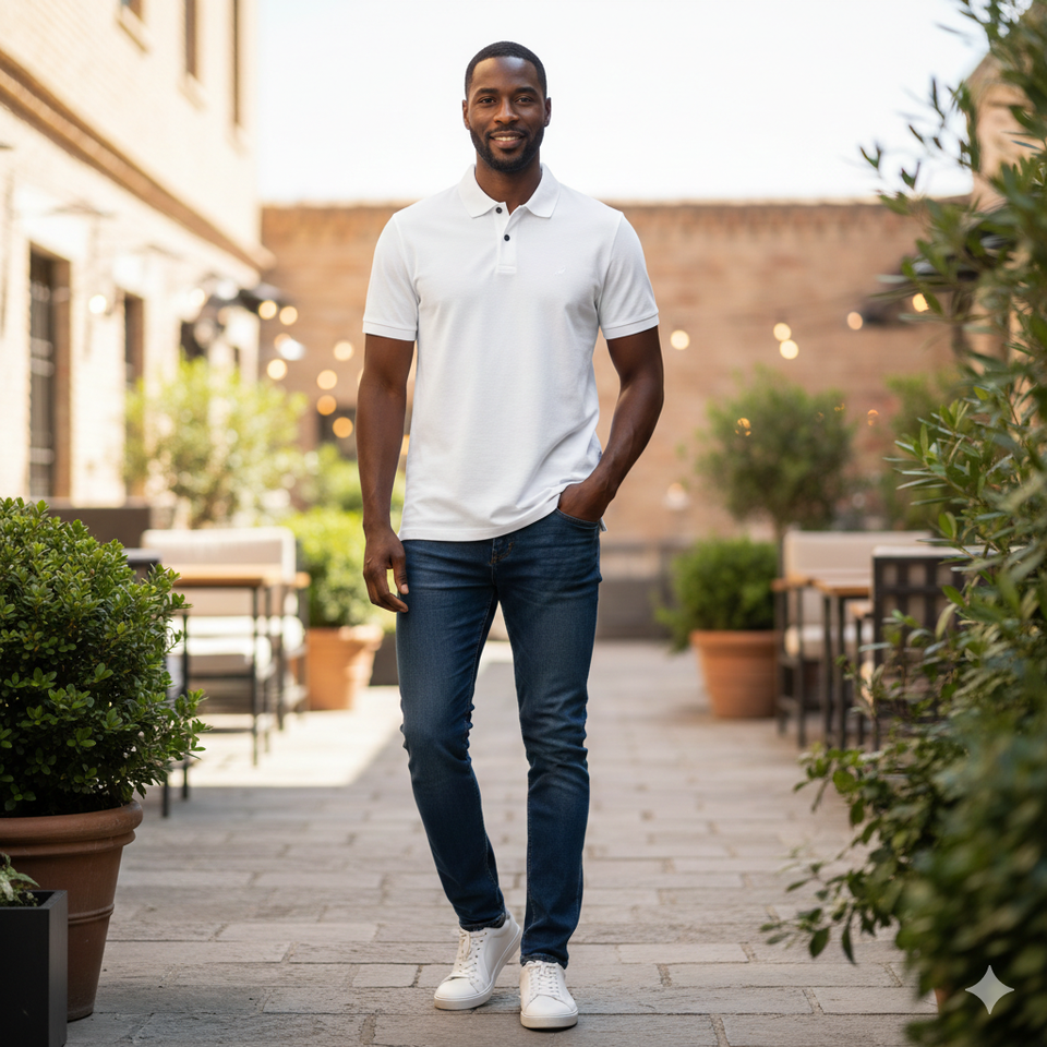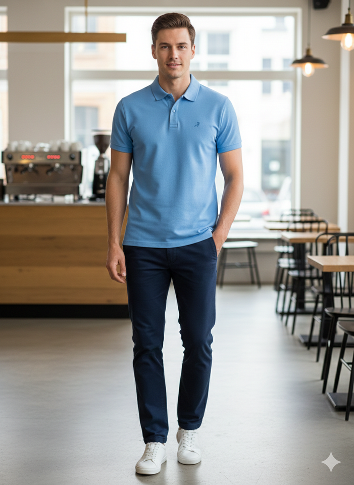 Camisa para Hombre con Puños Acanalados, Logotipo Frontal con Patrón de Letras, Corte Regular, Tejido Doble Piqué, 35% Algodón, 65% Poliéster, 230-240gsm