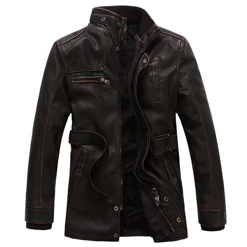 Chaqueta de Motociclista para Hombre, Chaqueta de Cuero Genuino Estilo Aviador, Invierno, Alta Calidad, Abrigo Cortavientos con Cuello Alto