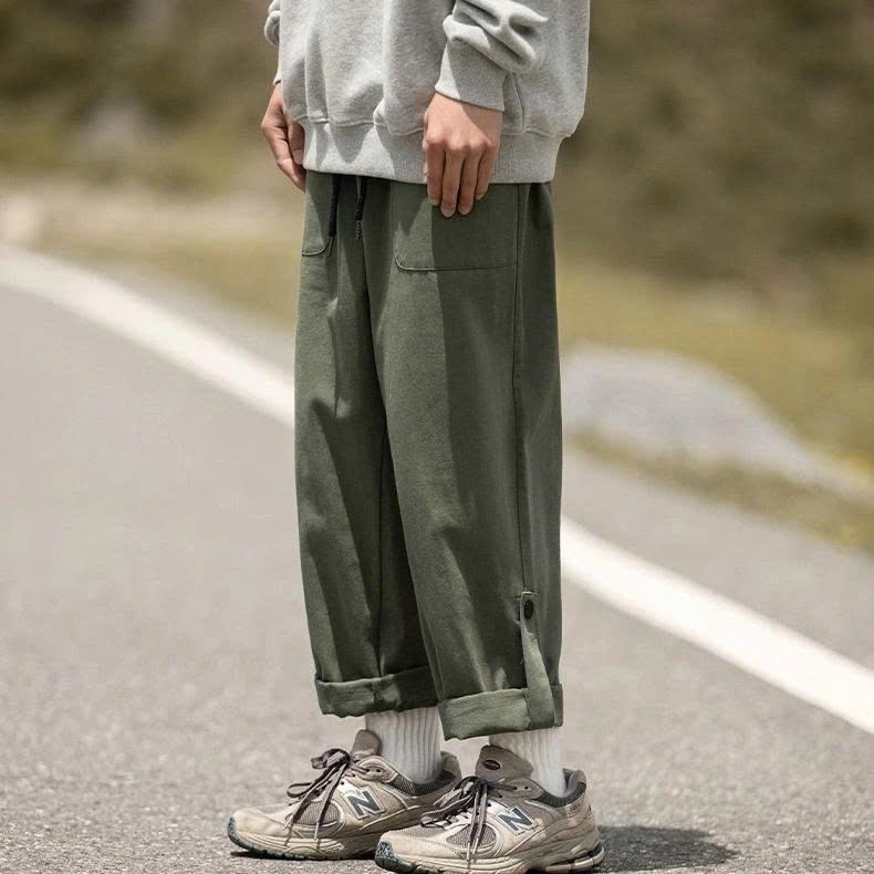 Pantalones Jogger caqui de pierna ancha para hombre estilo coreano 2025