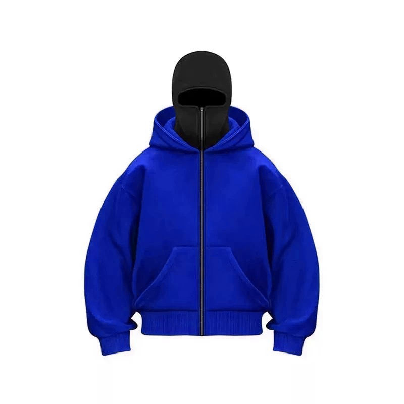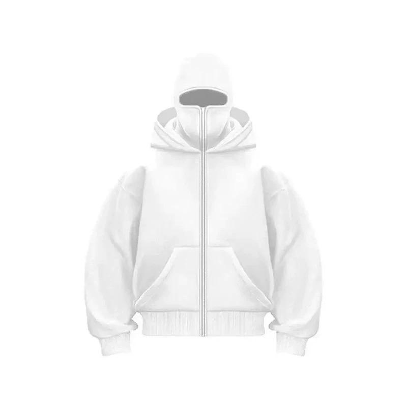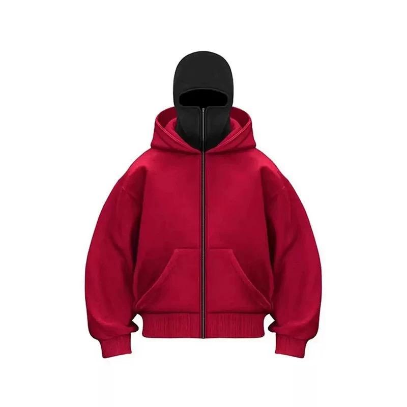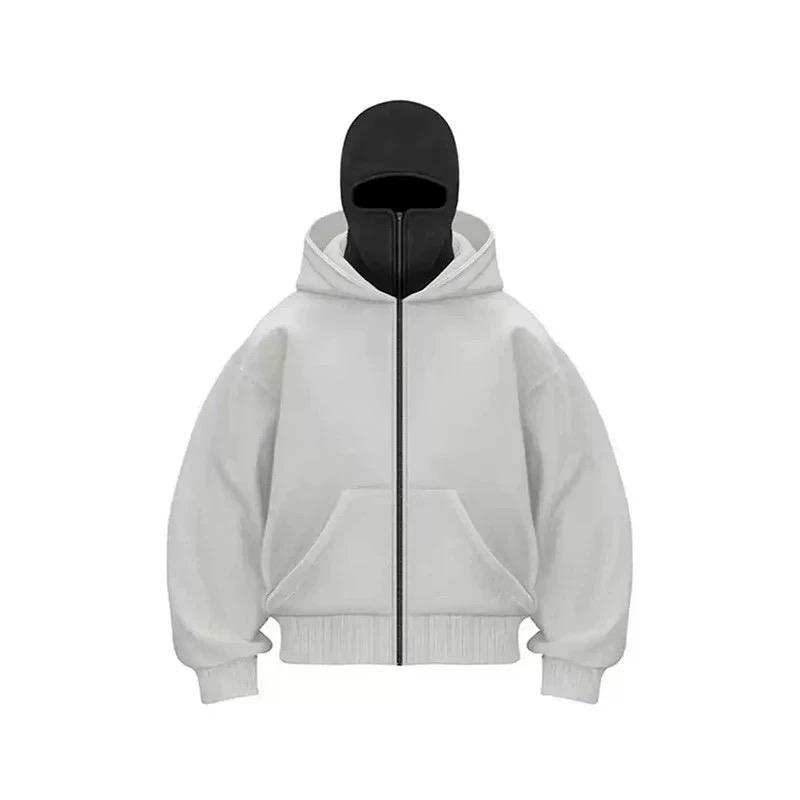 Sudadera con Capucha y Pasamontañas de Doble Capa con Cremallera, Estilo Retro Y2K, de Felpa Francesa, para Hombre y Mujer, Lavado a la Piedra, Ropa de Calle de Invierno, Venta al por Mayor