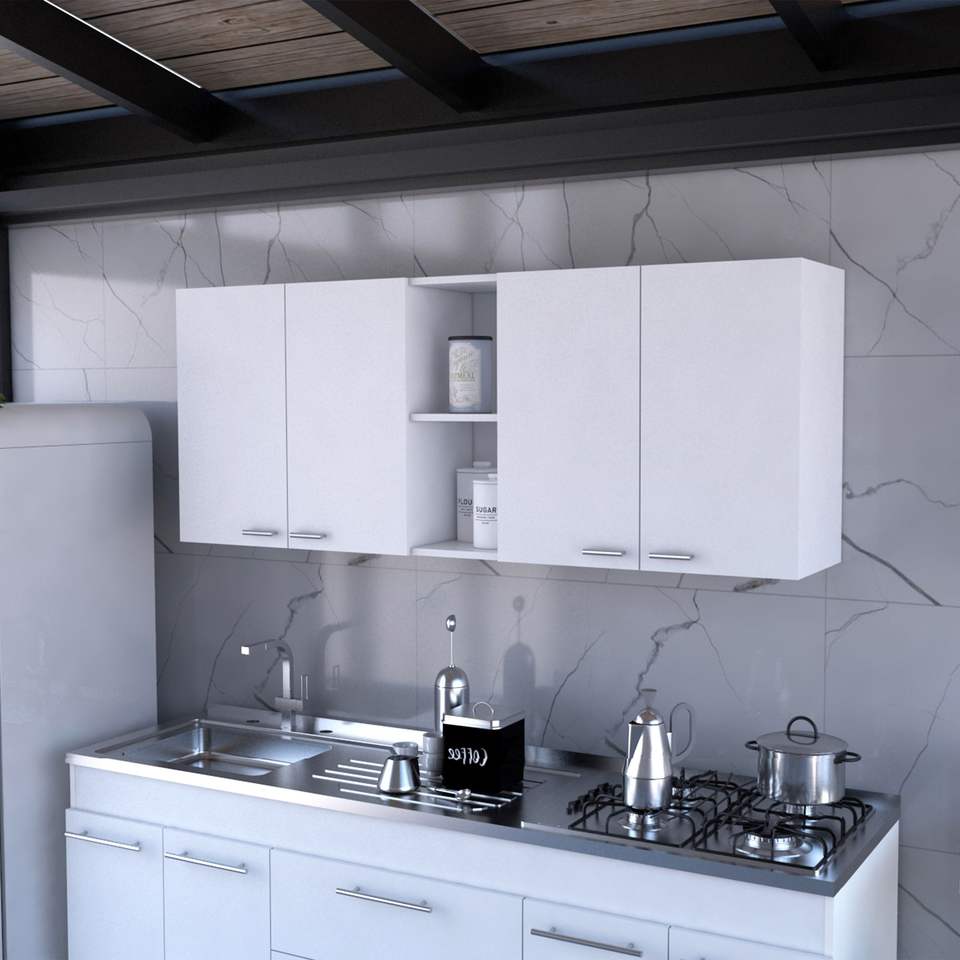 Mueble de Baño Menlo de 59 Pulgadas con Cuatro Puertas Batientes, Color Blanco
