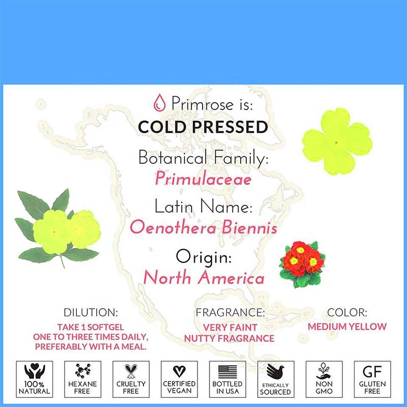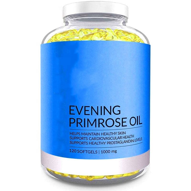 Las cápsulas de aceite de onagra orgánicas prensadas en frío para aliviar la menopausia y el síndrome premenstrual ayudan a equilibrar las hormonas para las mujeres