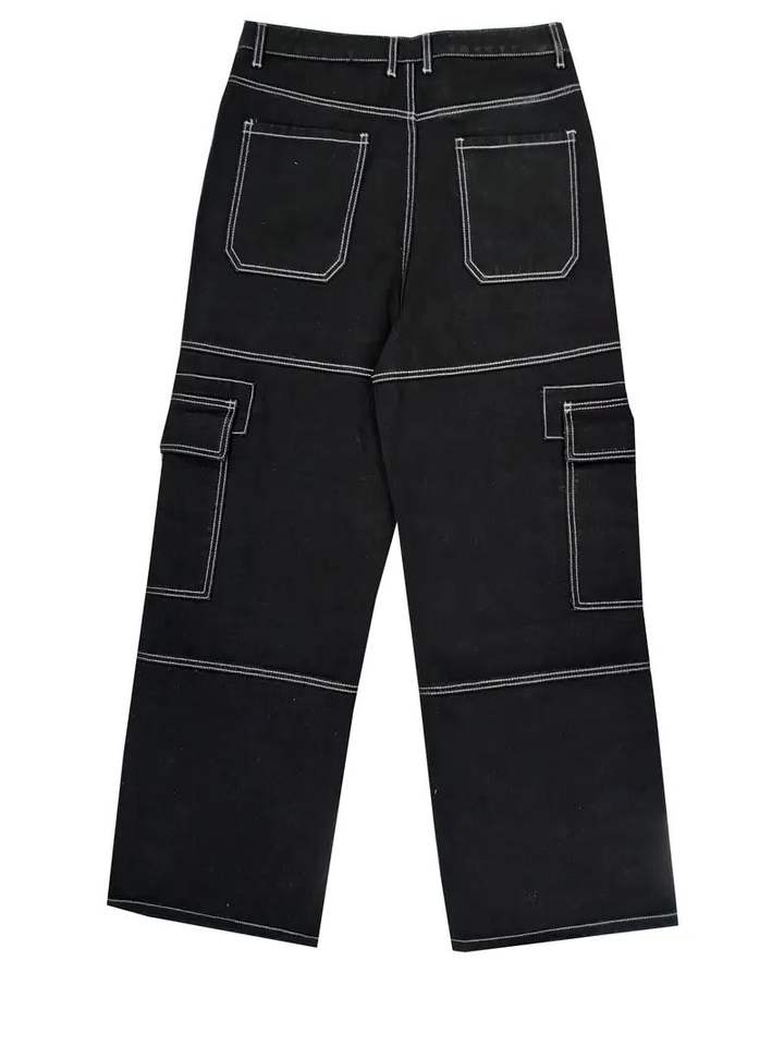 Pantalones vaqueros de pierna ancha de punto vintage lavados de 12oz para hombre Primavera lavable negro índigo