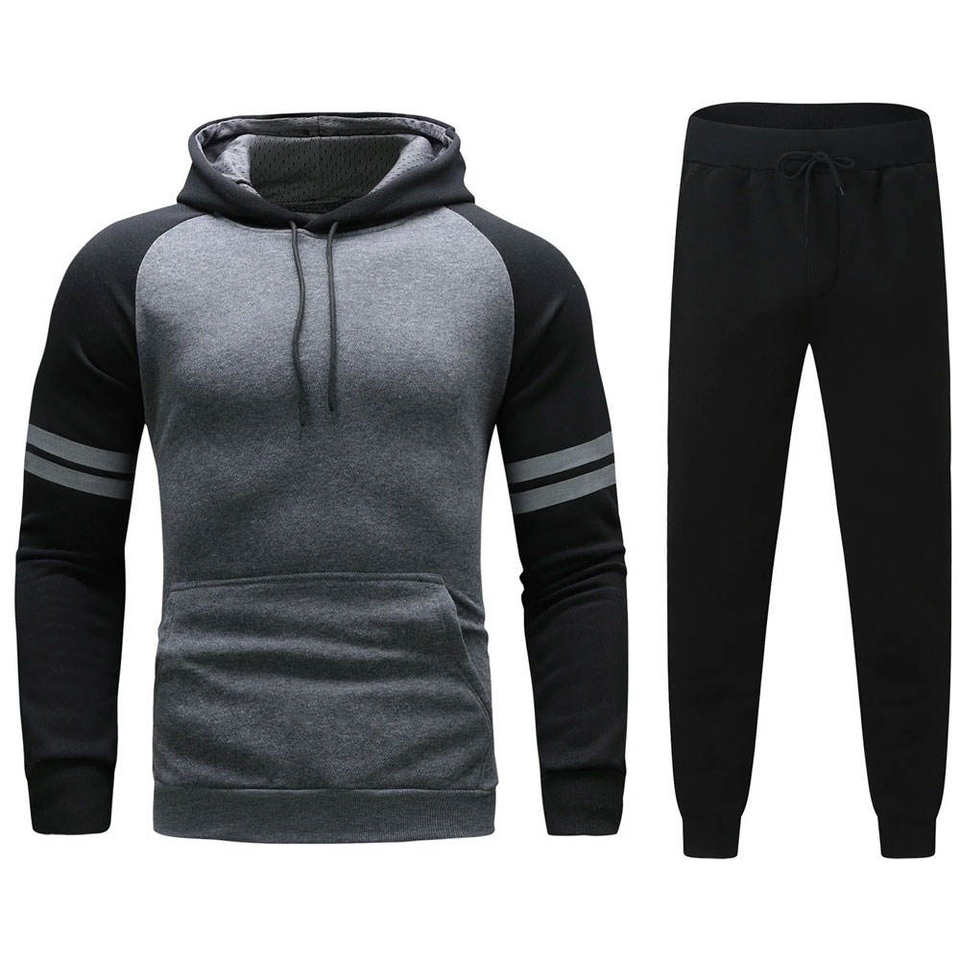 Conjunto de chándal de 2 piezas para hombre, Sudadera con capucha de Color de invierno y pantalones para correr, chándal deportivo con bolsillos para hombre