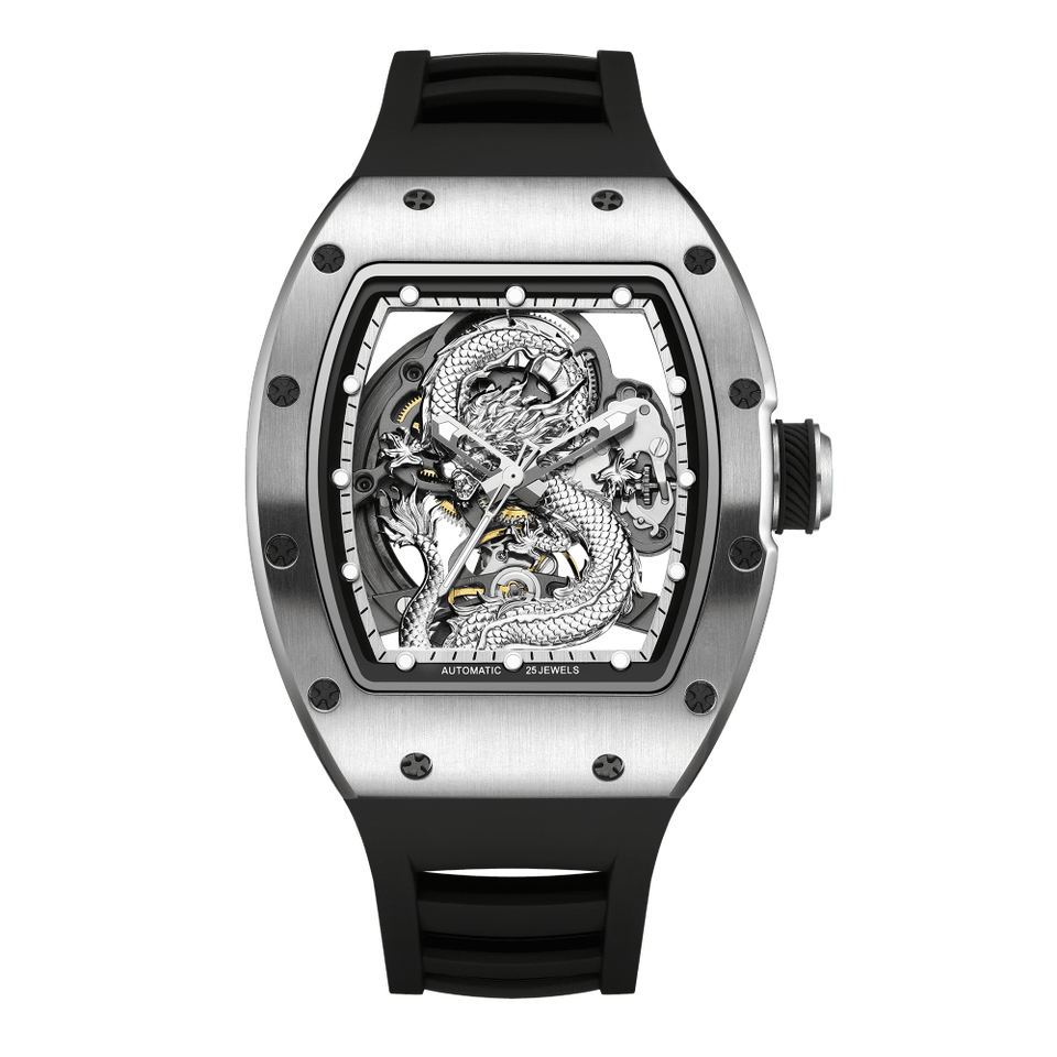 Relojes mecánicos automáticos de lujo para hombre, esqueleto, Tonneau, esfera personalizada de 41mm, 18mm, directo de fábrica, fabricante OEM