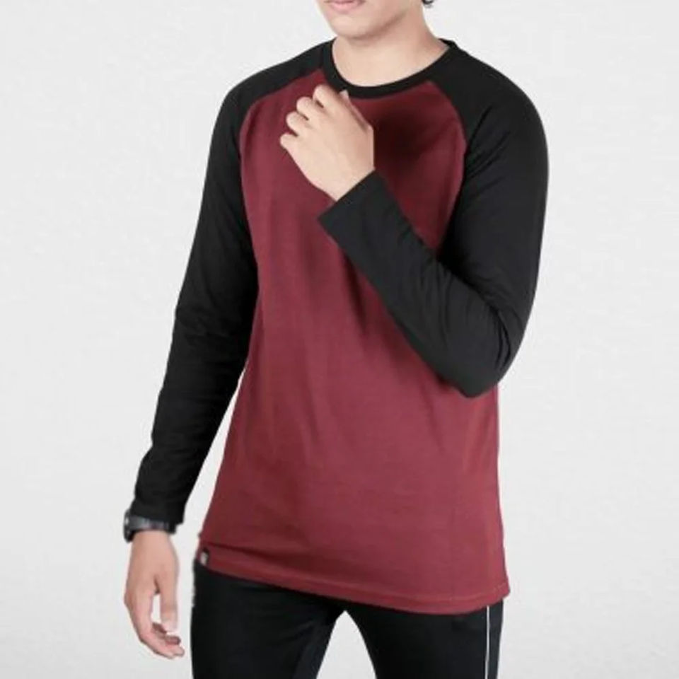 Camiseta de Manga Larga Estilo Béisbol para Hombre, Camiseta Vintage de Manga Larga, Top Informal Personalizado de Color Sólido