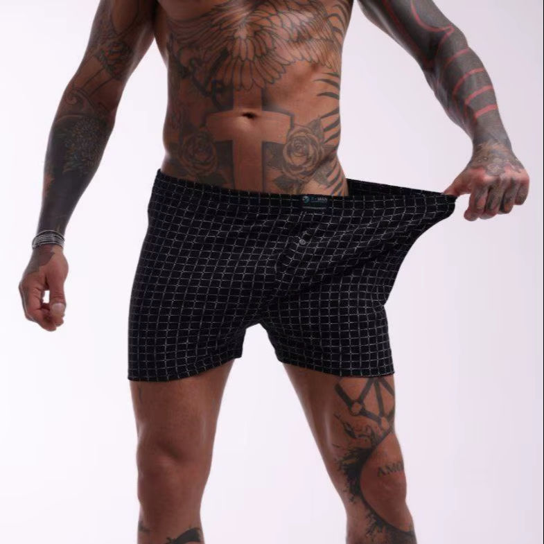 Calzoncillos Bóxer de Algodón con Estampado a Cuadros Negros para Hombre, Ropa Interior Masculina Transpirable, Suave y Cómoda, Cintura Elástica, Proveedor de Fábrica