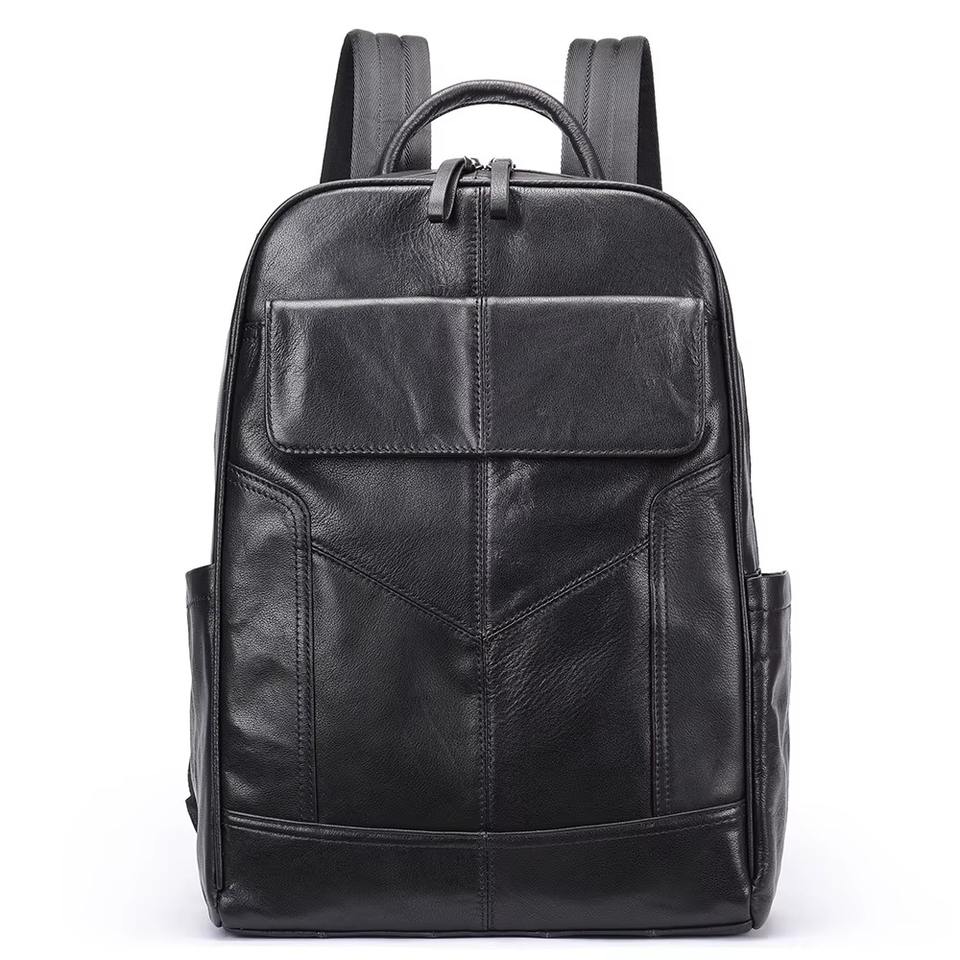 Mochila de cuero genuino negra para hombre, bolso para portátil de 7 pulgadas, mochila de viaje, mochila informal para trabajo y negocios