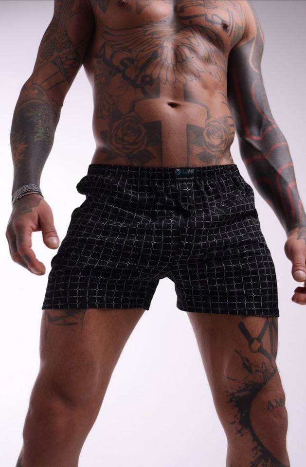 Calzoncillos Bóxer de Algodón con Estampado Cuadrado Negro para Hombre, Ropa Interior Masculina Transpirable, Suave y Cómoda, Cintura Elástica, Venta al por Mayor