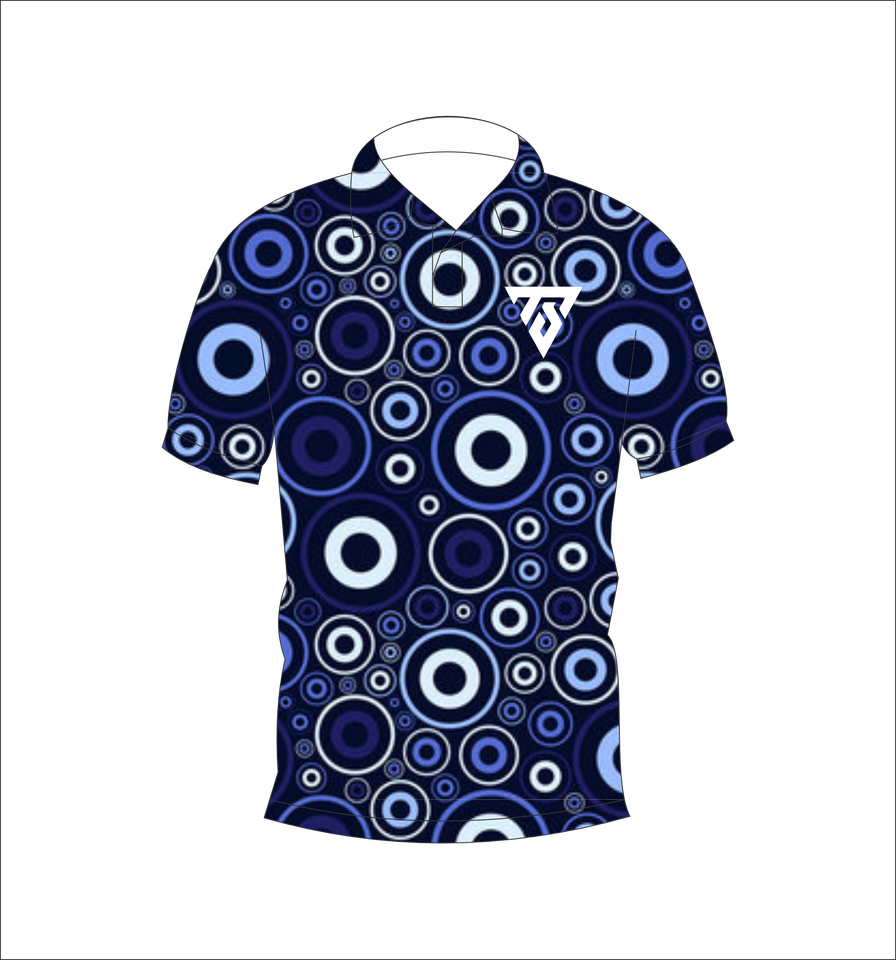 Camisa Polo para Hombre con Patrón Circular Abstracto Azul, Sublimación Personalizada, Manga Corta, Verano, Casual, Transpirable, Ligera, para Golf