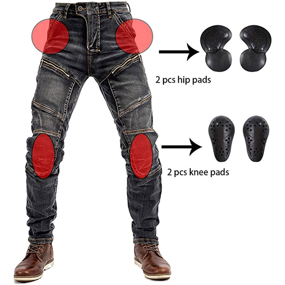 Pantalones Vaqueros de Mezclilla Azul para Hombre, con Protección, Estilo Motero, con Bolsillos con Cremallera, Paneles de Rodilla Acanalados, Transpirables