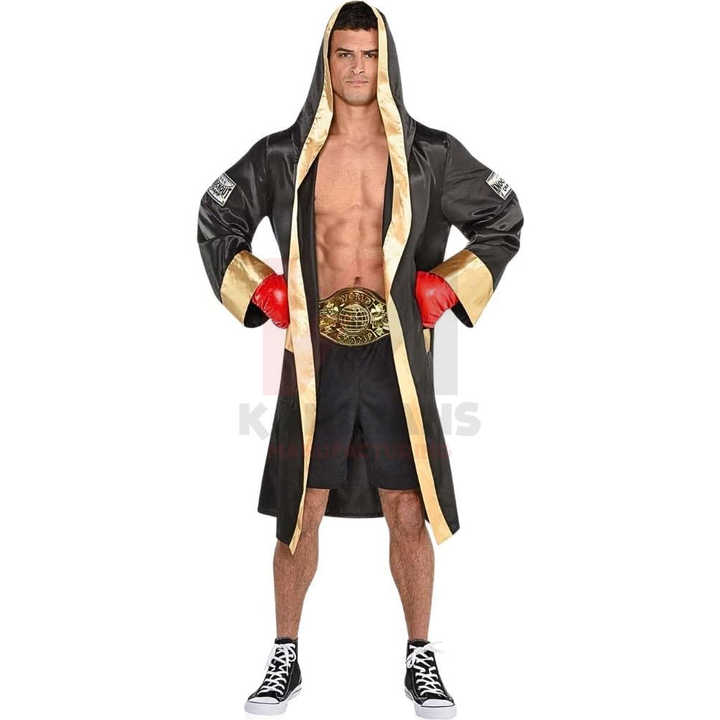 Disfraz de Boxeador para Hombre, Bata de Boxeo MMA con Capucha, Ligera, de Algodón, Disfraz de Campeón Luchador para Halloween y Cosplay