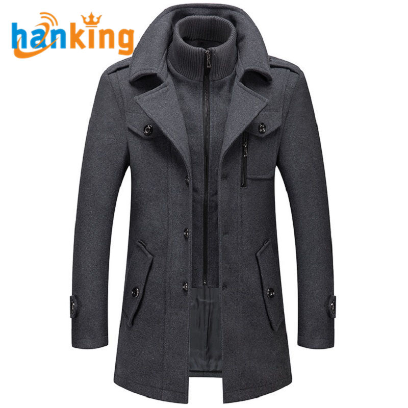 Abrigo de negocios para hombre, chaquetas de lana sólidas con cuello doble Vintage, chaqueta cálida informal de manga larga para Otoño/Invierno, ropa de calle
