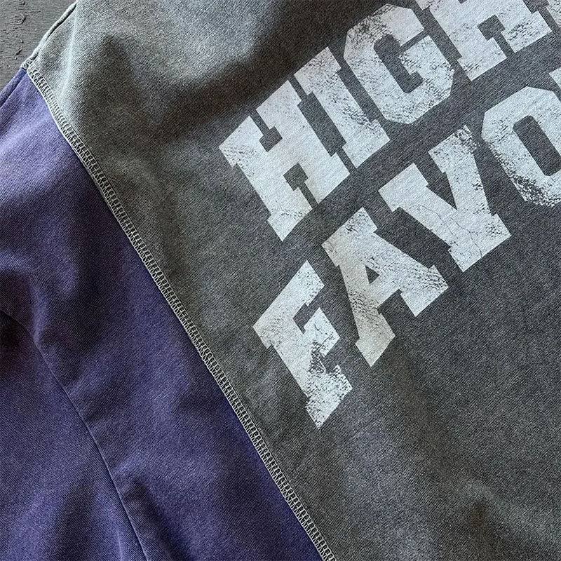 Camiseta Oversize para Hombre con Bloques de Color, Estampado Gráfico SEV NH, Estilo Urbano, Ajuste Holgado, Lavado Vintage, Moda Casual