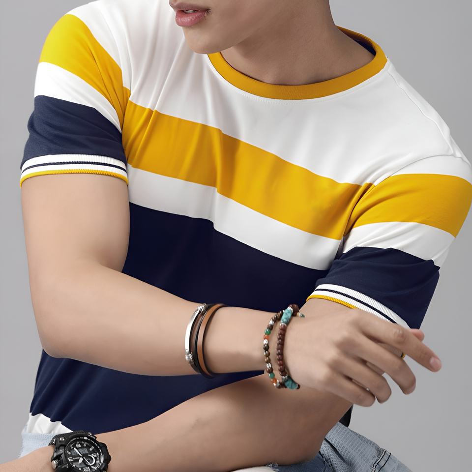Camiseta de algodón a rayas con bloques de color para hombre, camiseta informal de manga corta a la moda de verano, ropa de calle cómoda y transpirable, camiseta con cuello redondo
