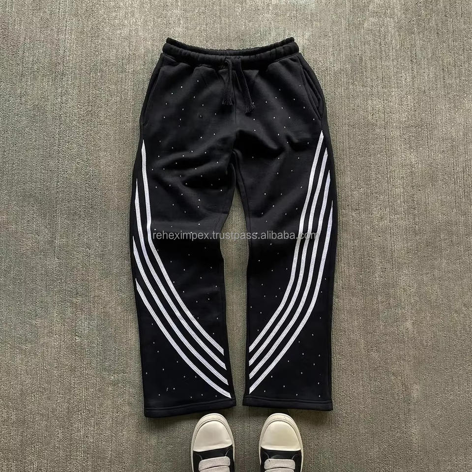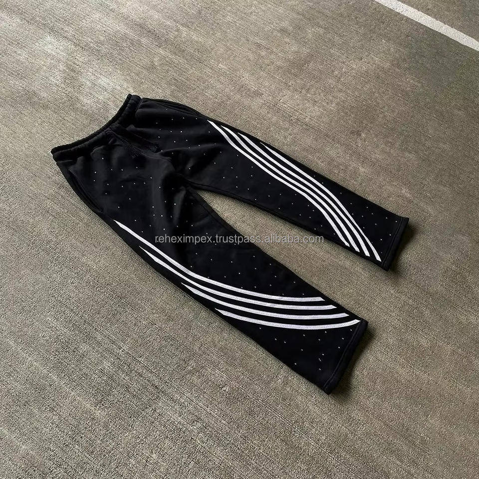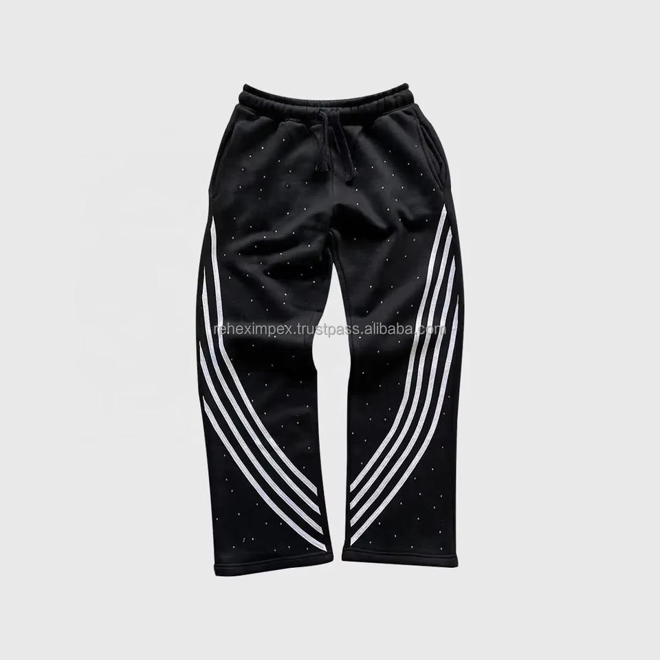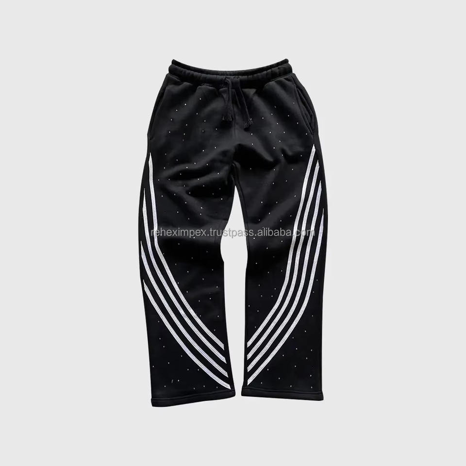 Pantalones de chándal con diamantes de imitación y rayas curvadas para hombre, pantalones de Ajuste Recto, diseño personalizado a granel y al por mayor, rectos, a rayas curvas