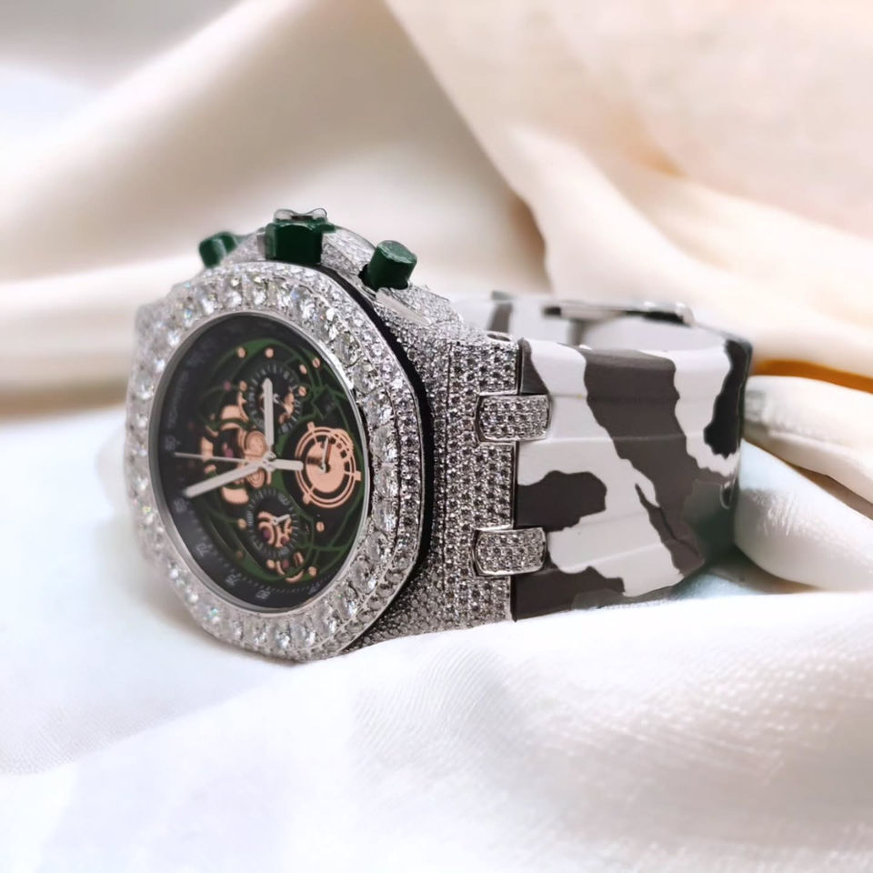 Reloj con esqueleto de diamante personalizado para hombre, correa de camuflaje de lujo, bisel helado, diseño único, reloj exclusivo, regalo de moda atrevido