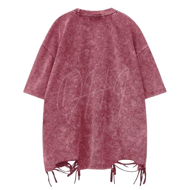 Camiseta de hombre personalizada oversize con efecto lavado y desgastado, estilo streetwear hip hop, corte holgado, bajo deshilachado, grunge, manga corta, para verano
