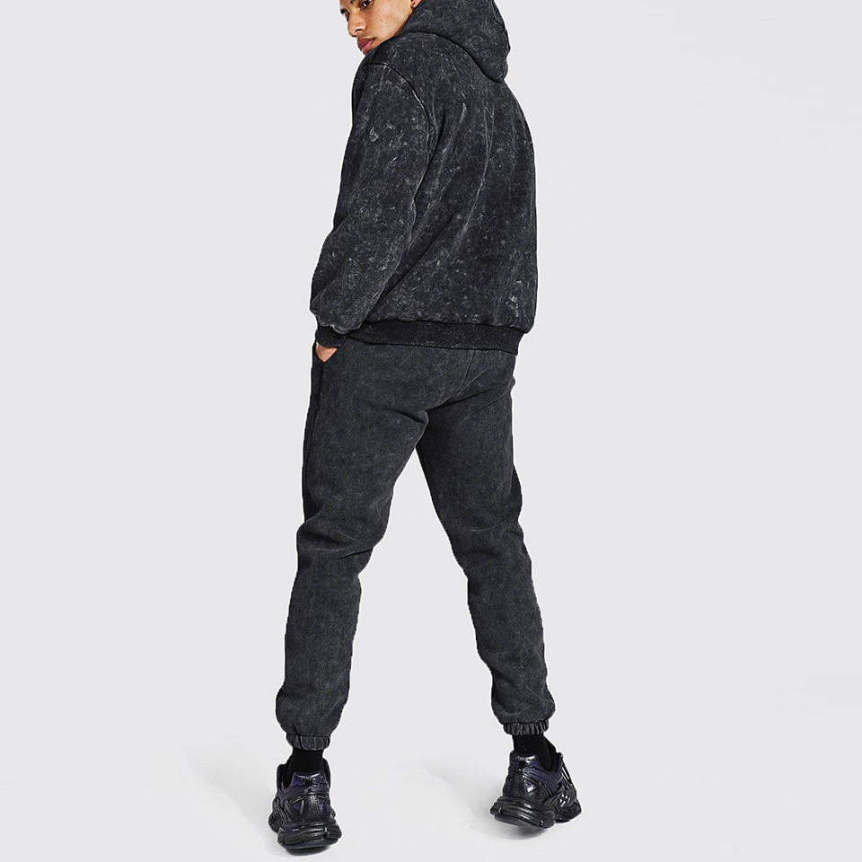 Conjunto de Dos Piezas Personalizado para Hombre: Sudadera con Capucha Slim Fit de Colores Sólidos y Pantalones Jogger Casuales con Efecto Lavado