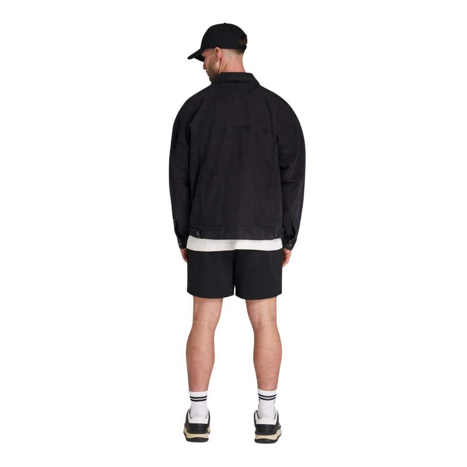 Chaqueta de mezclilla para hombre Ropa de abrigo negra de gran tamaño con botones clásicos Bolsillos dobles en el pecho y detalles de puntadas resistentes