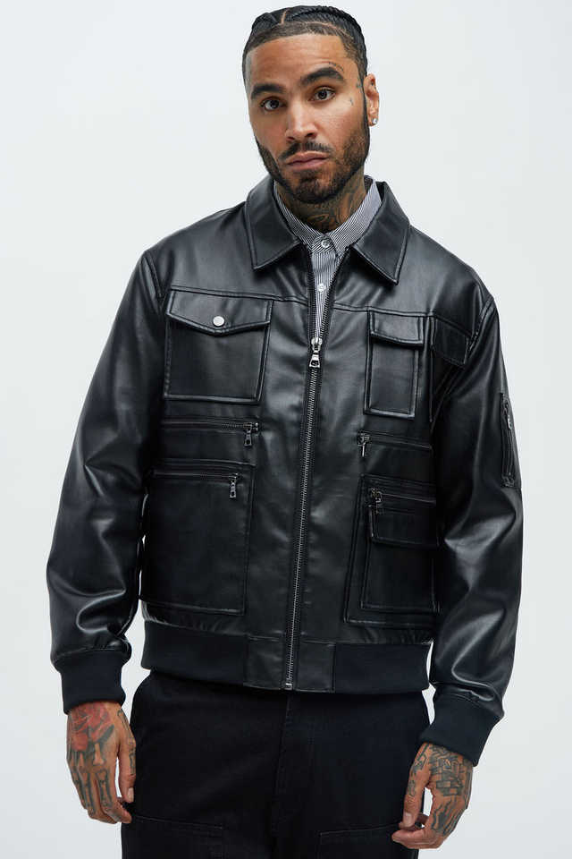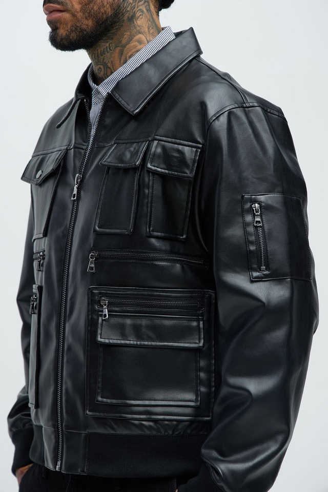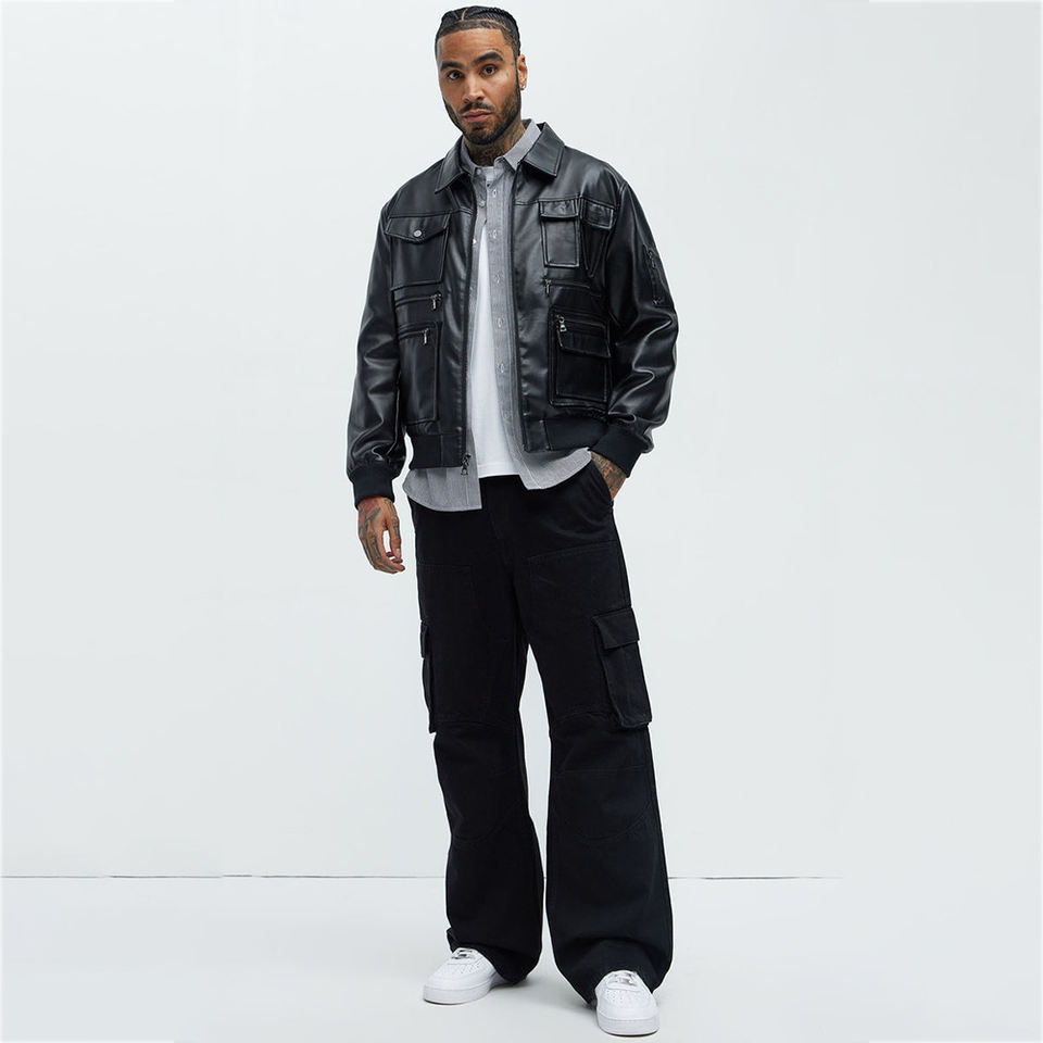 Abrigo de piel sintética de estilo de diseñador para hombre, ropa de calle con forro contrastante, chaqueta de cuero vegano de gama alta para hombre de Huzaifa Products