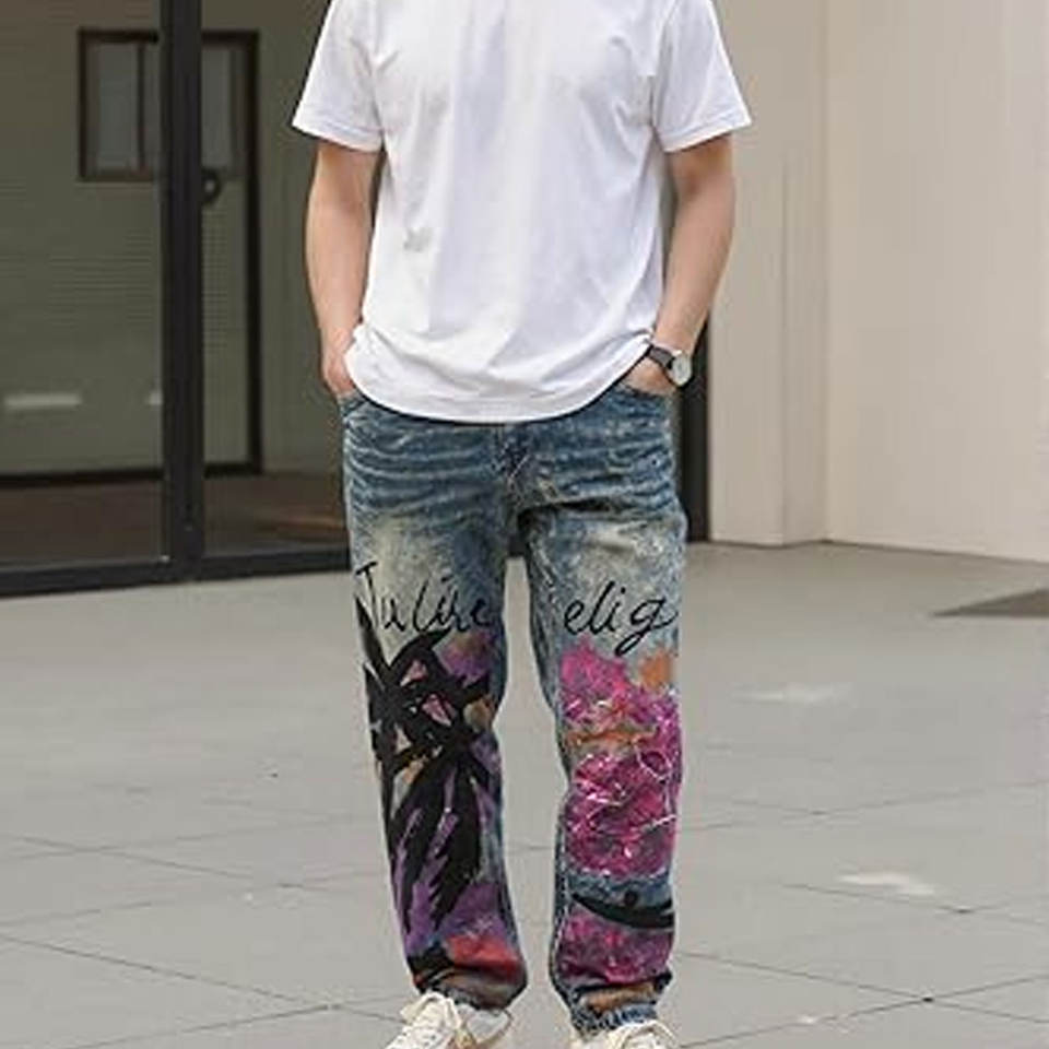 Jeans de mezclilla para hombre, de diseñador, lavados, estampados, de corte recto y ajustado, de mezcla de algodón, cómodos, estilo biker, casual, moda urbana