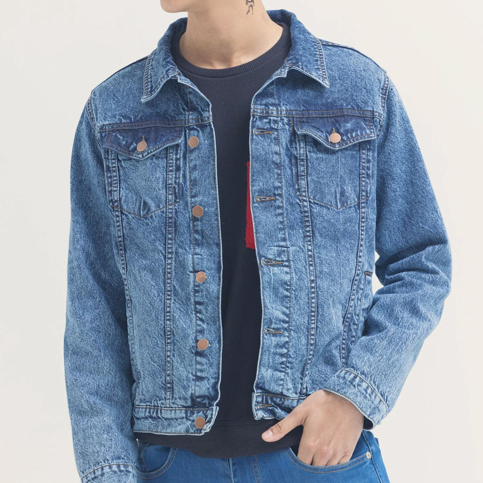Chaqueta vaquera desgastada para hombre, aspecto resistente retro para hombre a la moda, chaqueta vaquera de calidad superior y ajuste personalizado