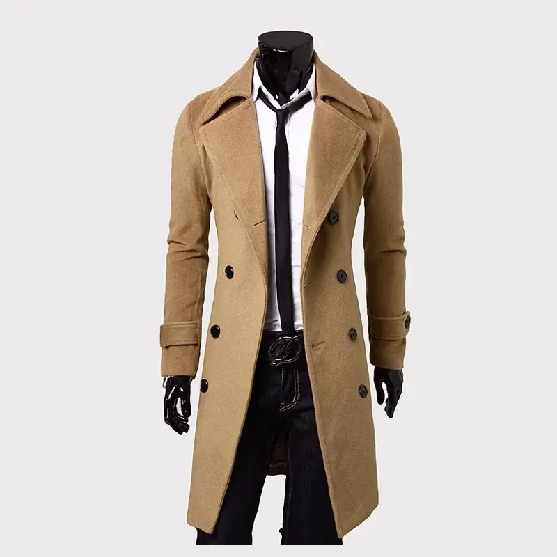 Gabardina de mezcla de lana con doble botonadura para hombre 2023, Chaqueta larga informal ajustada sólida, moda Otoño Invierno de alta calidad