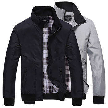 Chaqueta con cremallera de dos colores para hombre, prendas de vestir exteriores de moda informal, cómodo y elegante forro interior a cuadros, negro y gris
