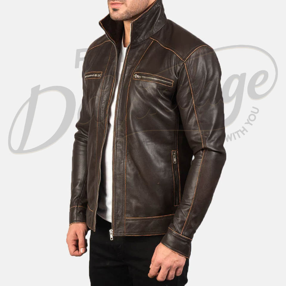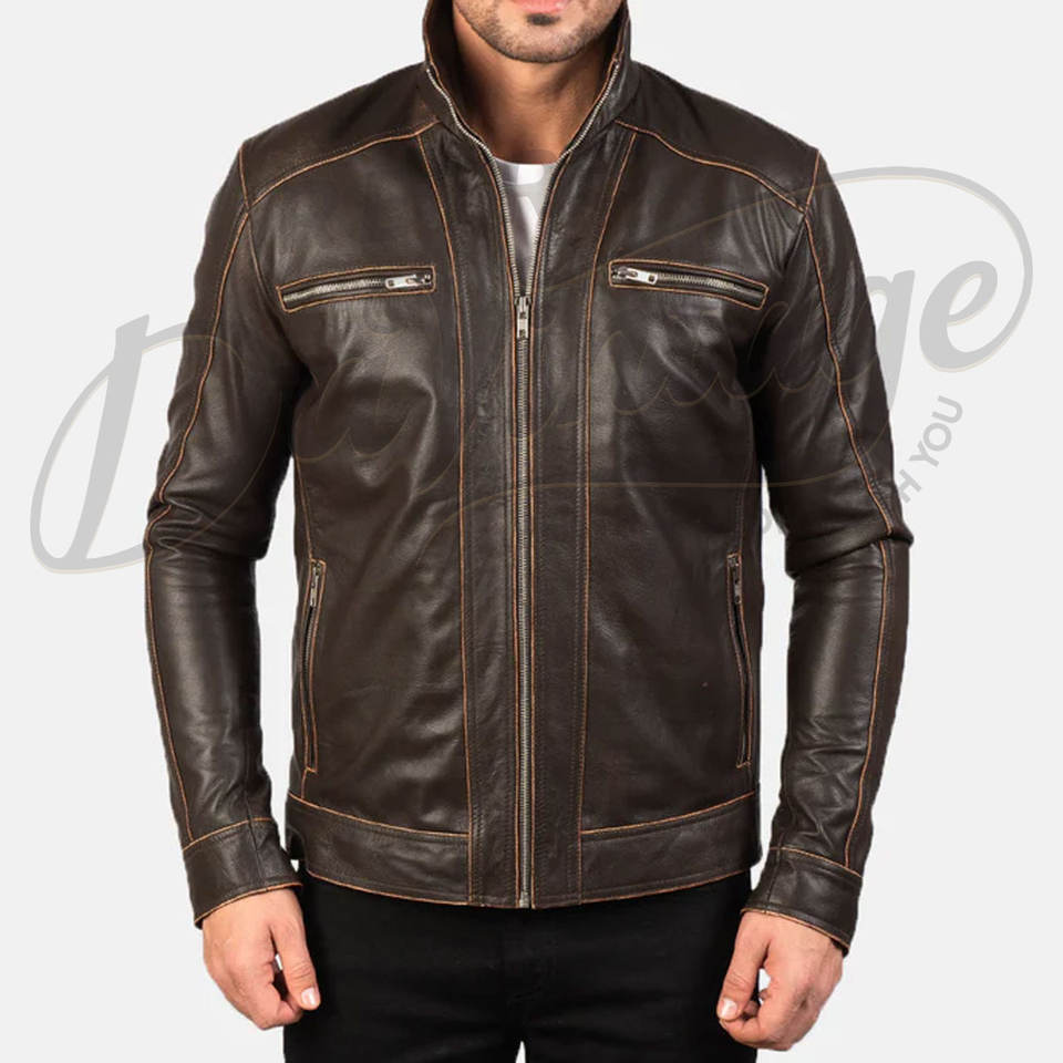 Chaqueta de cuero para hombre estilo motero