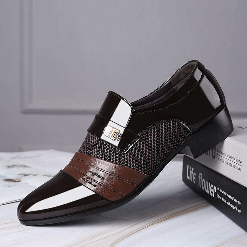 Zapatos formales para hombre transpirables de estilo británico de negocios de talla grande cómodos laca LMicrofibra de cuero puntiagudo zapatos ahuecados