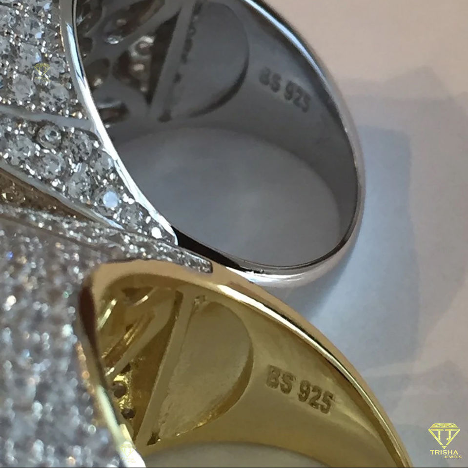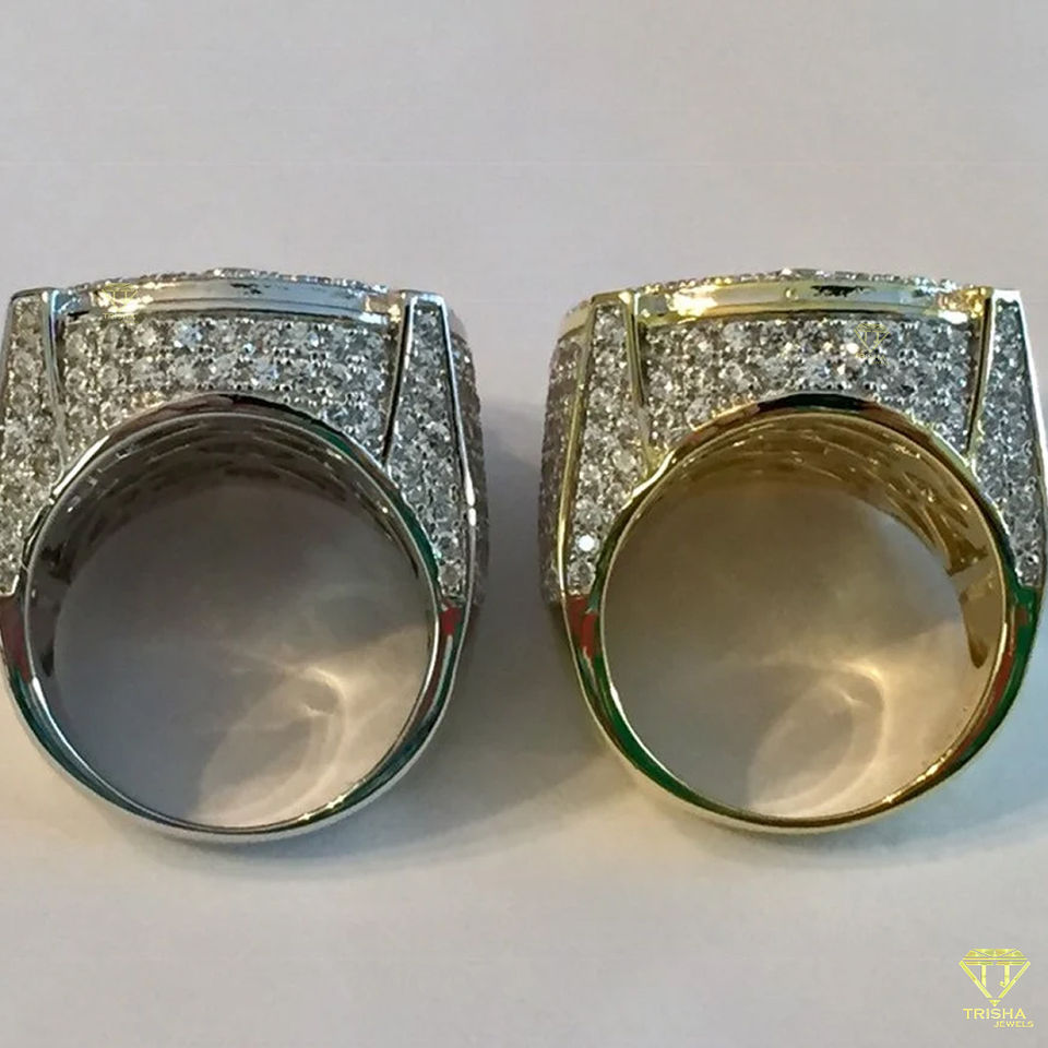 Anillo masón cuadrado y brújulas para hombre con pavé de diamantes Chapado en plata y oro