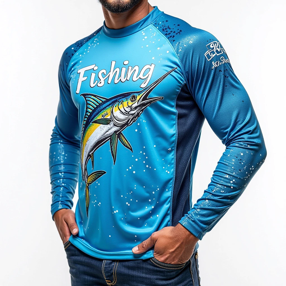 Camiseta de Pesca de Manga Larga Personalizada para Hombre, Hecha con Tela DryFit y Protección Solar UPF 50 para Pesca y Deportes al Aire Libre