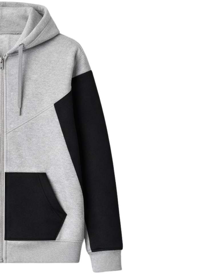 Sudadera con Capucha para Hombre, Color Gris y Negro, con Bloques de Color, Cierre de Cremallera, Felpa de Algodón Premium, Ropa de Calle de Invierno, OEM al por Mayor para Hombres Casuales