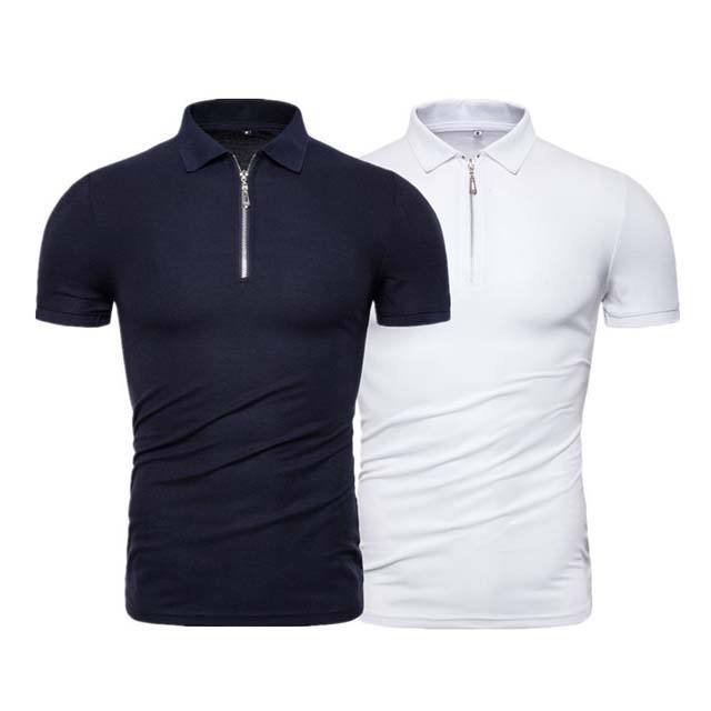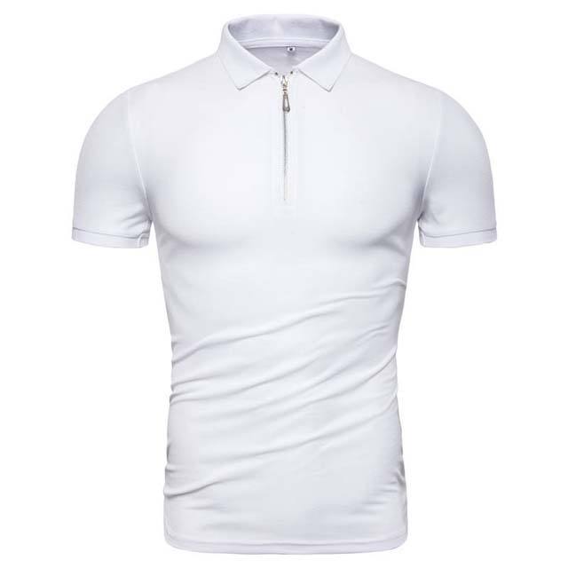 Polo de Manga Corta para Hombre, Cuello Medio Cierre, Tejido de Punto, Verano, 100% Algodón, Blanco, Corte Clásico, Camisetas Polo para Hombre 2025