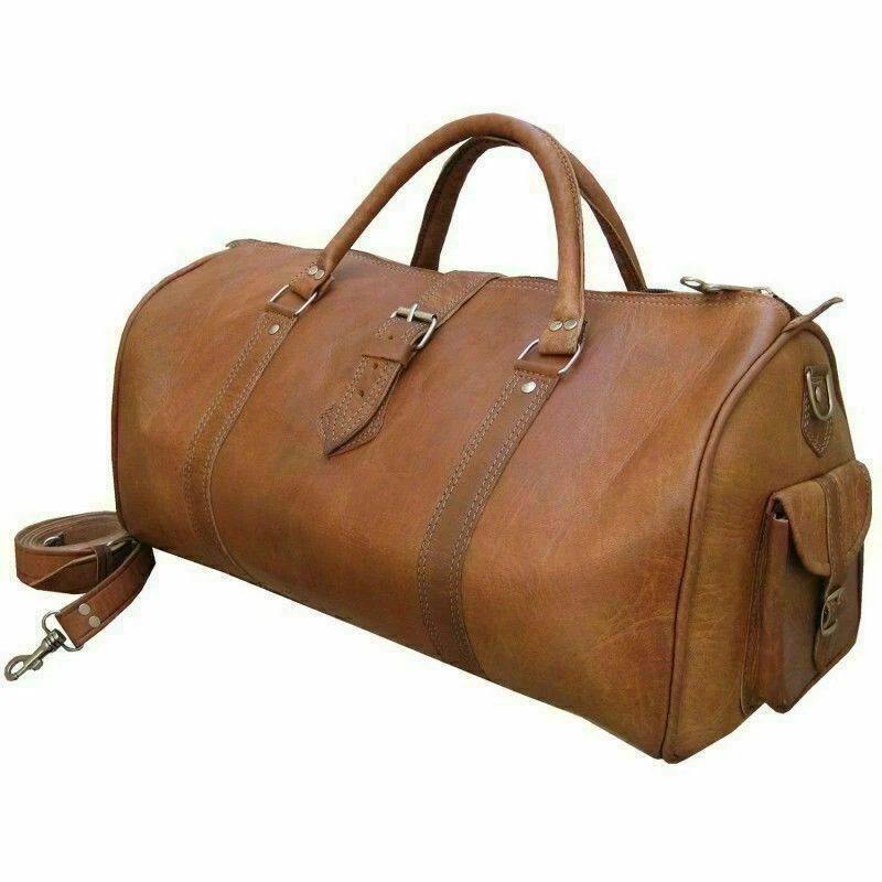 Bolsa de lona de cuero hecha a mano para hombre, equipaje de viaje de cuero genuino, bolsa de gimnasio de fin de semana Vintage, proveedor mayorista