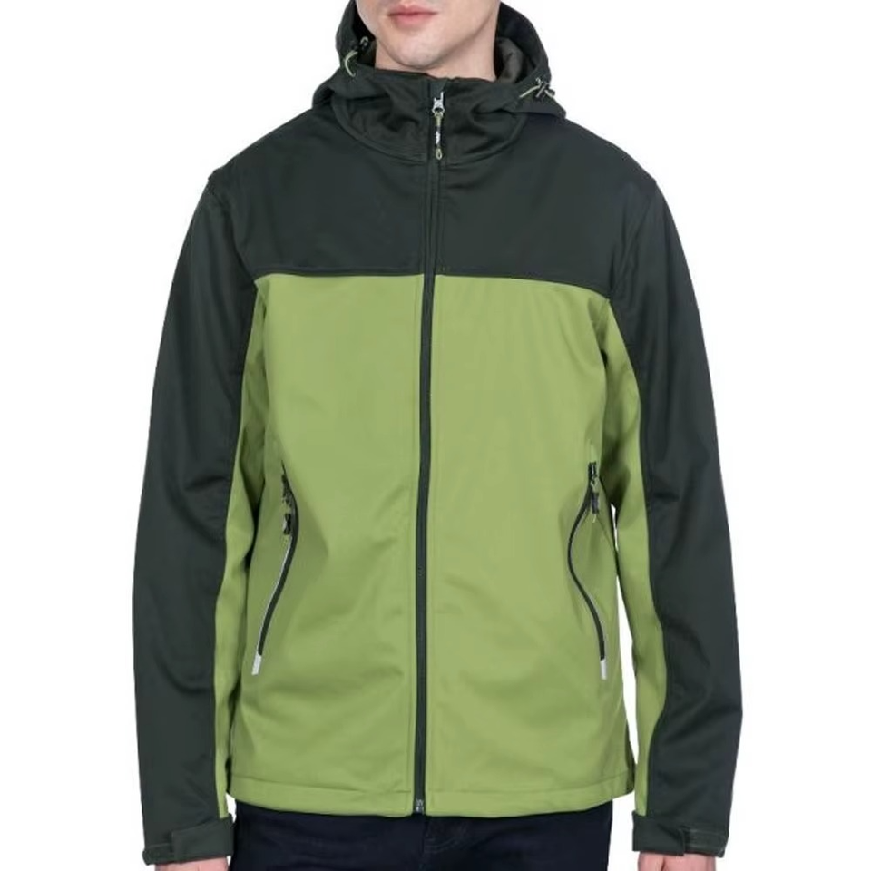 Chaqueta Softshell con Capucha para Hombre, Dos Tonos, Cierre Completo, Resistente al Viento, Impermeable, Transpirable, Ropa de Trabajo para Exteriores