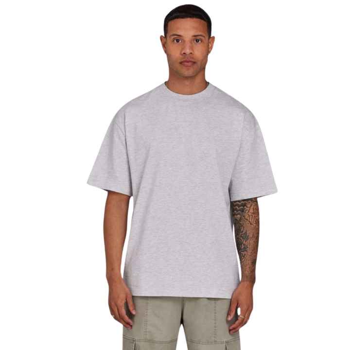Camiseta de gran tamaño caqui para hombre 100% algodón 190 GSM Streetwear Staple Tee Impreso Front Back Logo Drop Shoulder Relaxed Fit Shirt