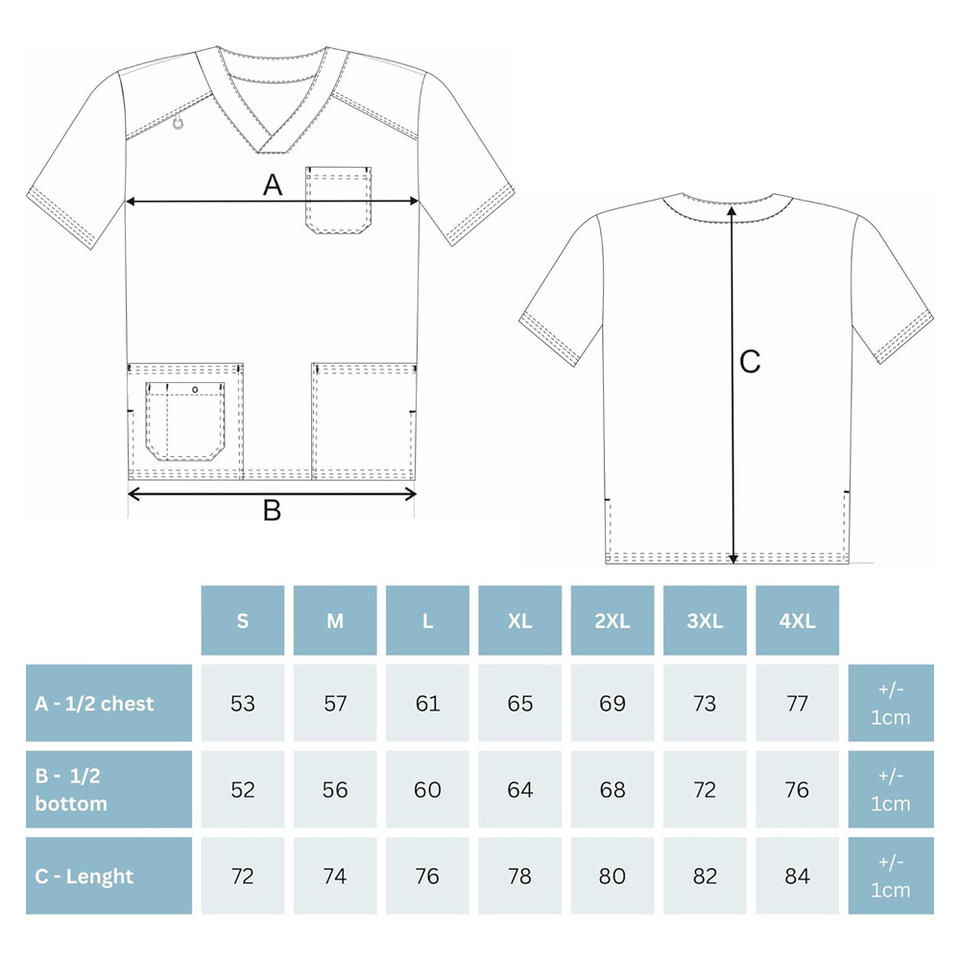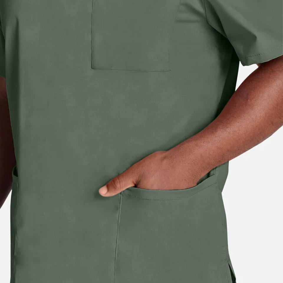 Top médico para hombre con opciones de impresión de bordado de logotipo personalizado tela transpirable para el cuidado de la salud y el uso diario de uniformes