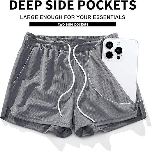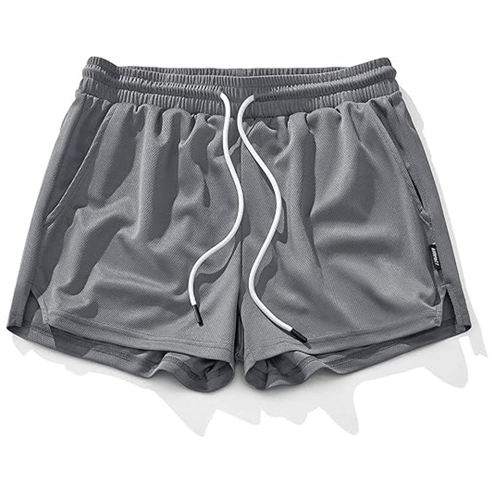 Pantalones cortos para correr de malla para hombre, pantalones cortos de entrenamiento atlético de gimnasio de secado rápido de 3 pulgadas para hombres con bolsillos