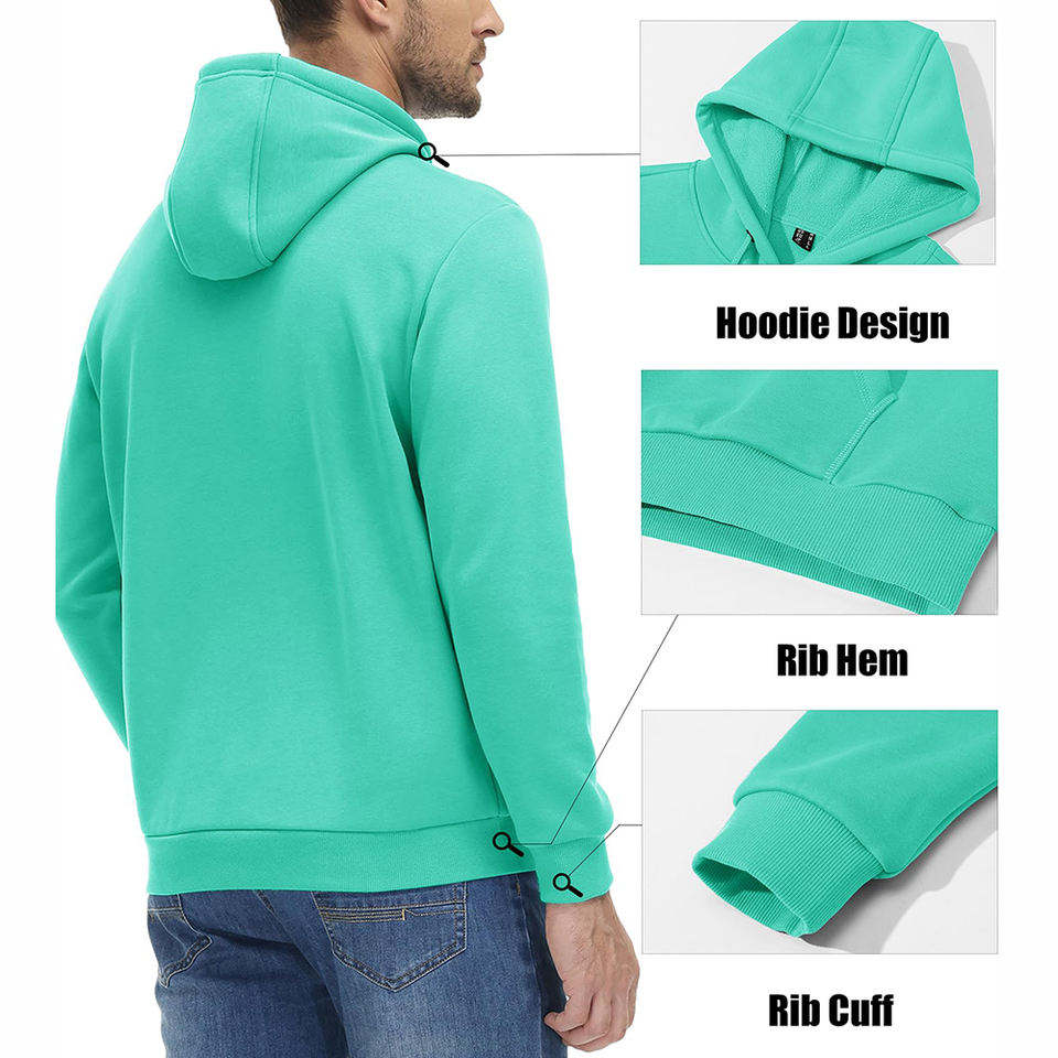Sudadera con Capucha Verde Menta para Hombre, Forro Polar Suave, Cálida, Informal, Cómoda, de Manga Larga, para Invierno
