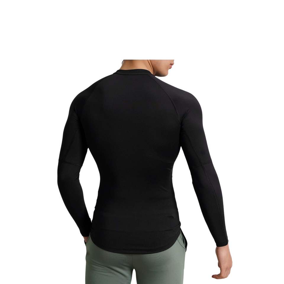 Camiseta de compresión para hombre con cuello simulado, transpirable, ecológica, de secado rápido, protección UV, manga larga, para gimnasio, surf, natación, ajustada