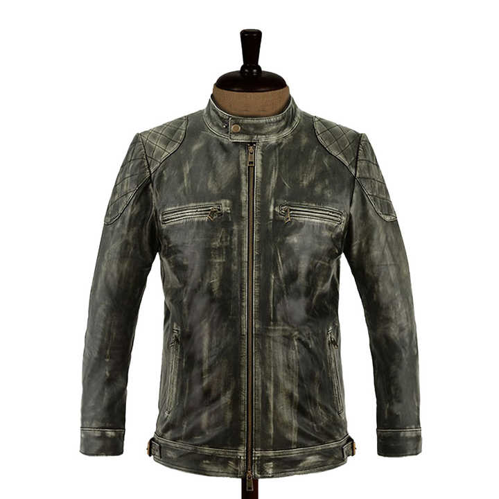 Chaqueta de Cuero Auténtico para Motociclista, Estilo Vintage, Desgastada, Marrón, Café Racer, Hecha a Mano, Chaqueta Bomber de Cuero para Hombre