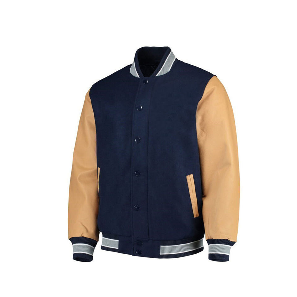 Chaqueta Estilo Universitario Multicolor para Hombre, Mangas en Contraste, Ribete Acanalado a Rayas, Botones a Presión, Ropa Urbana de Moda