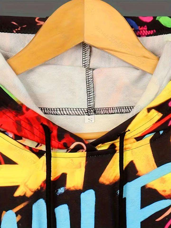 Mens Multicolor Graffiti Imprimir Sudadera con capucha Streetwear Pullover Sudadera con capucha Casual Moda OEM ODM Venta al por mayor